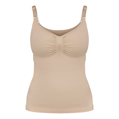 Carriwell sømløs ammetopp i beige kombinerer funksjonalitet, støtte og komfort for ammende mødre. Den har en innebygd shapewear-design som gir lett støtte til bysten og former magen for en flatterende passform. Det sømløse materialet sørger for en behagelig opplevelse hele dagen, og kan brukes alene eller under andre klær.