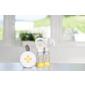 Når brystpumpen er slått på starter stimuleringsfasen, som varer i 2 minutter. Dette er med på å få melken til å flyte, og etter de 2 minuttene starter melkingen. Hvis melken starter å komme ut før de 2 minuttene er over, kan du starte melkingen selv ved å trykke på den nedre knappen på motorenheten. Etter bruk er pumpen enkel å demontere, slik at alle deler raskt kan steriliseres.