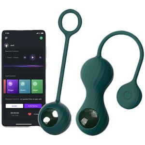 Disse bekkenbunnskulene kan styres via appen eller brukes uten. De kobles via Bluetooth til appen "Magic Kegel", der du kan styre og tilpasse vibrasjonsmønster og vibrasjonsstyrke og kombinere vibrasjonene med musikk. Du kan også chatte med en partner og la partneren ta kontrollen.