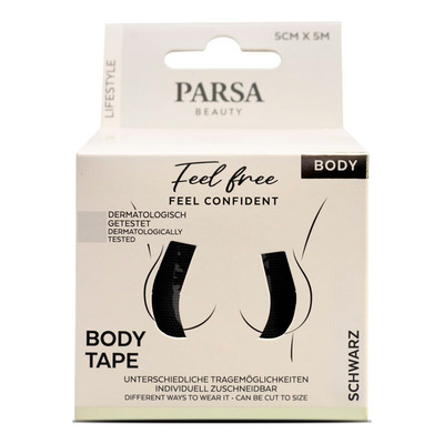 Parsa Beauty Body Tape er en hudvennlig og fleksibel tape som gir støtte uten behov for BH. Teipen er dermatologisk testet og designet for komfortabel bruk direkte på huden. Den har sterk klebeevne og sørger for at den holder seg på plass hele dagen. Materialet er pustende og tøyelig, slik at du kan bevege deg fritt samtidig som det gir den støtten du trenger. Teipen er 5 cm bred og 5 meter lang, noe som gir mulighet for flere bruksområder.