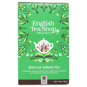 Sencha Green Tea fra English Tea Shop er en nydelig teblanding med smakfull og aromatisk sencha-te. Den er produsert etter japansk tradisjon og gjennom Fairtrade-produksjon. Sencha har en forfriskende, søt smak som de fleste vil like. Teen kommer individuelt pakket i komposterbare poser samt i en bærekraftig pappeske.
