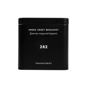 282 Green Sweet Bergamot fra Teministeriet er en herlig te med smak av søt mango og bergamott. Den er basert på antioksidantrik, grønn te, rosenblader, kornblomst, solsikke samt naturlige aromaer og har en rund og aromatisk smak. Teen leveres i en fin tinnboks i minimalistisk design som vil pynte på ethvert kjøkkenbord.
