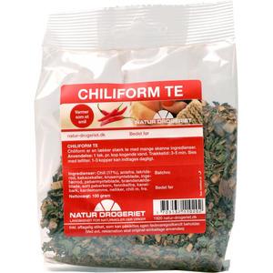 Chiliform teen er en urtete fra Natur-Drogeriet, med en lekker og sterk smak. Teen inneholder sterke og smakfulle urter som anis, lakrisrot og en skarp chili, som gir teen en varmende effekt og krydret smak.