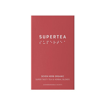 Seven Herbs Organic fra Teministeriets Supertea-serie er en herlig koffeinfri te basert på 100 % økologiske ingredienser. Den inneholder blant annet peppermynte, bjørnebærblader og kamille krydret med koriander og anis. Teen får i tillegg en frisk sitrussmak av appelsinskall og sitronmelisse.