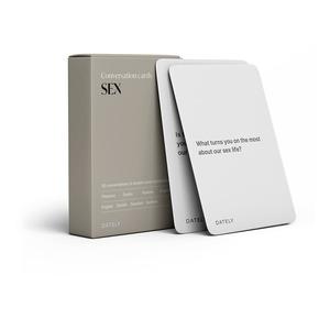 Dately Sex Conversation Cards er utviklet for å åpne opp for intime og respektfulle samtaler om seksualitet som styrker båndet mellom deg og partneren din. Med disse kortene kan du dykke ned i åpne og ærlige samtaler om dine lyster, fantasier og grenser. Kortene skaper et trygt og respektfullt rom der du kan utforske seksualiteten din uten frykt eller forbehold.