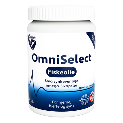OmniSelect Fiskeolje utmerker seg ytterligere ved å være dekket av Biosym Pure-kvalitetsmerket, som sikrer kontroll av oksidasjonsnivået og gir deg mulighet til å sjekke renhetsverdiene på biosym.dk. I tillegg er denne fiskeoljen sertifisert av Friends of the Sea for sitt bidrag til bærekraftig fiske. EPA og DHA i fiskeoljen bidrar til normal hjertefunksjon, og DHA støtter også normal hjernefunksjon og syn. Denne gunstige effekten oppnås med et daglig inntak på til sammen 250 mg EPA og DHA for hjertet og 250 mg DHA for hjernen og synet.