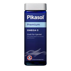 Pikasol Premium Omega-3 er et kosttilskudd med ren, høykonsentrert fiskeolje, som sikrer at din kropp får den anbefalte daglige tilførsel av omega-3 fettsyrer. Fiskeolje inneholder omega-3 fettsyrene EPA og DHA, som bidrar til en normal hjertefunksjon. Du oppnår denne gunstige effekten ved et daglig inntak på 250 mg DHA og EPA. Videre bidrar DHA til opprettholdelse av en normal hjernefunksjon samt et normalt syn ved daglig inntak på 250 mg DHA.