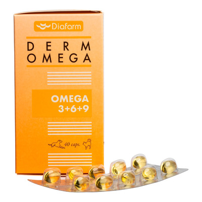 Diafarm Omega-3, -6 og -9-kapsler er et tilskuddsfôr for hund og katt. Inneholder omega 3-olje med EPA og DHA samt gurkemeieolje og kjempekaktusnattlysolje. De flerumettede fettsyrene bidrar til å opprettholde normal hud og pels. Produktet er beriket med vitaminer og sink.