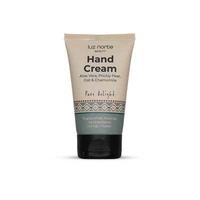 Luz Norte Hand Cream gir intensiv pleie til tørre hender med en skånsom formel basert på økologisk aloe vera. Den inneholder glyserin, sheasmør og planteoljer som fikenkaktus, jojoba og mandel for å gi fuktighet, næring og styrke hudens naturlige barriere. Kamille og havre har en beroligende effekt og bidrar til å lindre irritasjon og rødhet. Konsistensen er lett og ikke fet.