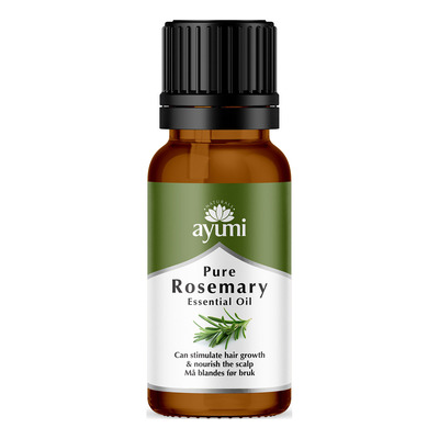 Ayumi Rosemary Essential Oil er en rosmarinolje som kan stimulere hårsekkene, noe som potensielt fremmer økt hårvekst. Denne oljen har flere bruksområder og kan bidra til å balansere hodebunnen. Rosmarinolje har blitt brukt i mange generasjoner for å styrke håret og gi det glans, samtidig som den hjelper til med å opprettholde en sunn hodebunn ved å redusere tørrhet og flassende områder. Oljen passer for alle hårtyper og inneholder ikke parfyme.