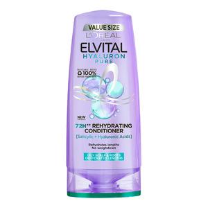 L'Oréal Paris Elvital Hyaluron Pure Conditioner for tørt hår er beriket med hyaluronsyre og salisylsyre