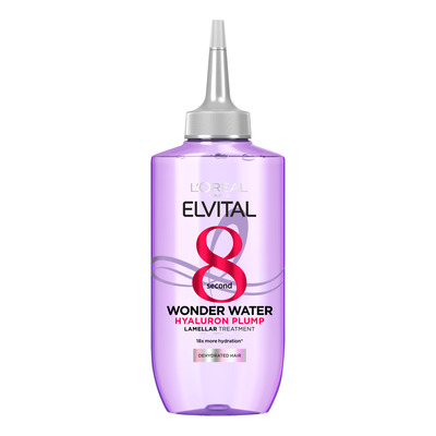 Hyaluron Plump Wonder Water fra L'Oréal Paris revitaliserer håret og gjør det 18 ganger mer fuktig. Gi håret ditt den vakreste glans på bare 8 sekunder. Formelen er lett og flytende og passer til alle hårtyper. Bare skyll ut som en lett balsam. Dette mirakelproduktet får kjedelig hår til å se sunt og velstelt ut.