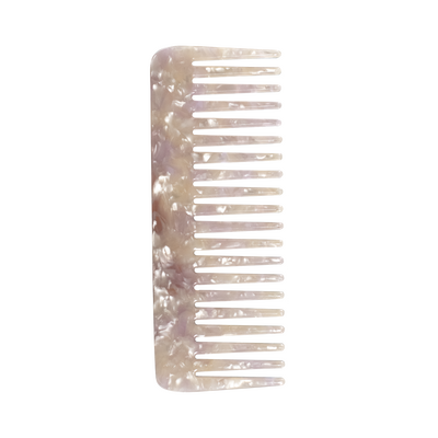 Er du lei av den klassiske brune eller svarte kammen? Med kammene fra Happy er det tenkt på det visuelle designet, slik at du kan ha kammen liggende frempå et vakkert brett på vasken eller sminkebordet - nesten som en dekorasjon! Denne hårkammen har et vakkert og feminint, perlemorsuttrykk og har verken brede eller smale tenner, noe som gjør den ideell for å løsne de fleste hår uansett tykkelse.