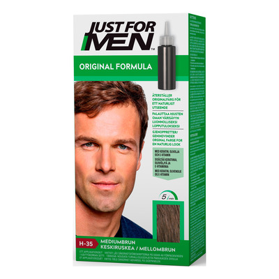 Just For Men Hair Colour Medium Brown jevner ut hårfargen i en mellombrun nyanse som dekker grått hår