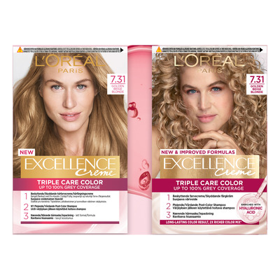 Er du litt i tvil om hvordan du kan farge håret ditt, så er Excellence Crème et opplagt startprodukt for deg! Excellence gjør det mulig å farge håret skånsomt, lett og kjapt hjemme, uten å skade verken hår eller hodebunn, så du får et trygt og glansfullt resultat med det samme. Produktet består av tre komponenter: en farge, en sjampo og en lett hårmaske som alle er sammensatt med beskyttende ingredienser som pleier og passer på håret under og etter fargingen, så du kan holde det sunt og friskt og få langtidsholdbar farge. Excellence fås i hele 24 forskjellige nyanser så du kan finne nøyaktig den tonen som passer deg.