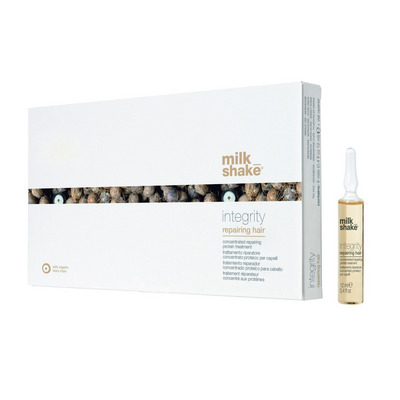These Integrity Repairing Hair fra Milk_shake er en dypt pleiende hårkur som gjenoppretter tørt, skadet og kjemisk behandlet hår. Kuren virker både på de indre og ytre hårstråene for best mulig effekt. Kuren er en konsentrert hårkur med proteiner og aminosyrer som etterlater håret mykt og strålende. Kuren inneholder Muru Muru-ekstrakt, som gir næring og pleier håret på dypet.
