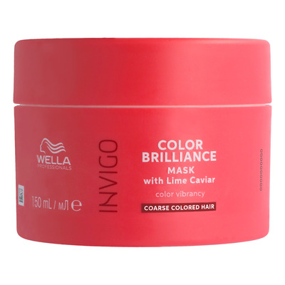 Wella Professionals Invigo Color Brilliance Mask Coarse Hair er en intens hårkur for grovt og farget hår. Den inneholder Color Brilliance-Blend og Lime Caviar, som er rik på vitaminer og antioksidanter som bidrar til å opprettholde fargeglansen og motvirker oksidasjon etter farging.