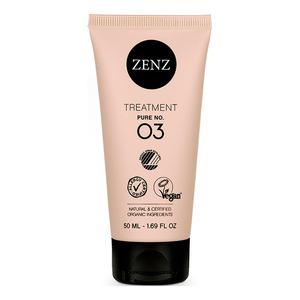 ZENZ Treatment Pure no. 03 er en mild, parfymefri hårkur som skånsomt styrker og gir fuktighet til håret. Den er egnet for ømfintlig, tørt og skadet hår og hodebunn, og virker dypt inn i hårstrukturen og forbedrer hårets helse og glans. Treatment Pure no. 03 inneholder proteiner, vitaminer og mineraler som alle bidrar til et sunnere og silkemykt hår.