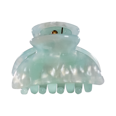 Enten du vil piffe opp antrekket med litt ekstra farge, eller rett og slett vil gjøre det enkelt og raskt å sette opp håret, er den fine hårklypen fra Happy et must. Hårklypen har et vakkert, turkis design og er utstyrt med ekstra "tenner", som gir et bedre grep. Klemmen måler ca. 4,5 cm og er derfor ideell for å samle det øverste håret slik at det kommer vekk fra ansiktet.