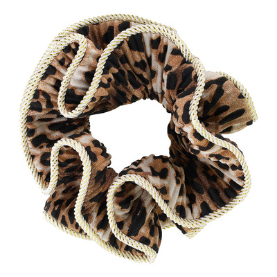 Det luksuriøse chiffonmaterialet med leopardmønster gir et vakkert fall, og den krøllete effekten sørger for volum. Det er den perfekte kombinasjonen av funksjon og mote – en scrunchie som ikke bare holder håret på plass, men som også beskytter det med sitt metallfrie design for å unngå skader.