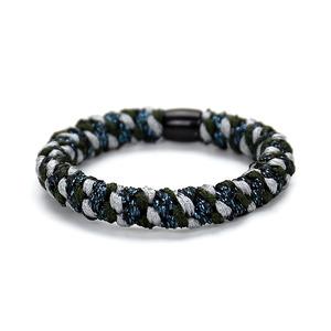 Hårstrikk i det populære tvinnede designet vi alle kjenner - flott design med blå, grønne og sølvfargede farger