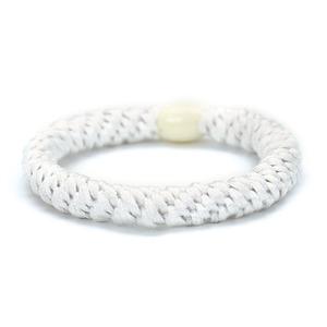 Denne fine hårstrikken er laget i det svært populære vridd design, som er laget med en sterk strikk, som er trukket med et farget bånd. Strikken er med på å piffe opp antrekket ditt, samtidig som det holder håret på plass. Den kan brukes i både tykt og tynt hår, og vridd rundt håret så mange ganger du vil til det har ønsket hold på håret. Denne strikken er laget i en fin snøhvit farge.