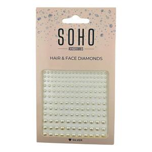 SOHO Hair & Face Diamonds Silver inneholder 216 hvite perlediamanter som kan brukes til både hår og ansikt. De selvklebende perlene er enkle å påføre og krever ikke ekstra lim. Disse perlene er perfekte til fest, festival og hverdagsbruk, og gir et sofistikert og glamorøst utseende. De er designet for å vare lenge, og den dermatologisk testede limformelen sikrer at de ikke forårsaker irritasjon. Enten du er ute etter en subtil glans eller en mer utpreget utsmykning, er disse perlene et allsidig valg for enhver stil.