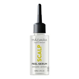 Mádara Scalp Peel Serum er et vegansk hårserum som skånsomt eksfolierer hodebunnen. Serumet er formulert med melkesyre og hyaluronsyre, og renser effektivt ved å fjerne døde hudceller, produktrester og overflødig olje. Denne naturlige eksfolieringen bidrar til å forbedre helsen i hodebunnen og skaper et ideelt miljø for velstelt hår.