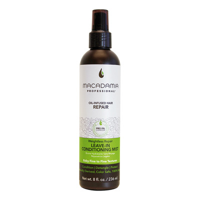 Macadamia Weightless Repair Leave-in Conditioning Mist er en lett, fuktighetsgivende spray for fint hår som bidrar til å beskytte håret mot skader og gjør det lettere å style. Den er beriket med macadamia- og arganolje for å gjenopprette mykhet og styrke, samtidig som den bekjemper krus og porøsitet.