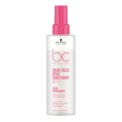 Er håret ditt farget, krøllet eller slitt? Schwarzkopf BC Color Freeze Spray Conditioner er en leave-in spray-balsam utviklet for å skånsomt pleie og mykgjøre farget hår. Spray-balsamen gjør håret mindre flokete og er utviklet med en formel som pleier håret, mens fargen bevares – helt uten å tynge ned håret. Løser opp hårets floker på et øyeblikk.