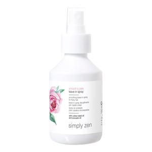 Simply Zen Smooth & Care Leave In Spray er spesielt godt egnet for tørt og krusete hår, men kan brukes av alle hårtyper. Leave-in-sprayen bidrar til å forbedre og beskytte håret mot skader. Den inneholder arganolje, jojobaolje og macadamiaolje som fukter og pleier håret, slik at det blir mykt, glatt og glansfullt.