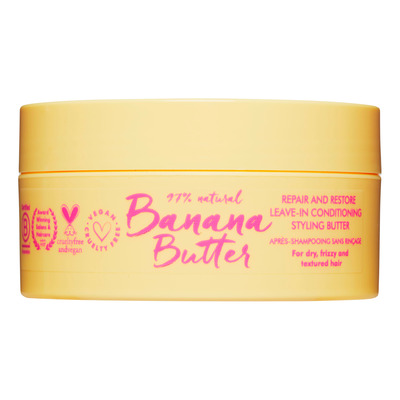 Umberto Giannini Banana Butter Leave-In Conditioner er en leave-in balsam med nærende sheasmør og kokosnøttolje som gjenoppretter elastisitet og glans i tørt og strukturert hår.