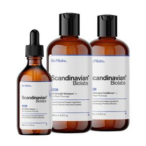 Med denne 3-steps rutine fra Scandinavian Biolabs er du sikret hårpleieprodukter mot hårtap som er basert på naturlige ingredienser, og som utelukkende er plantebaserte. Dette settet inneholder 3 produkter: