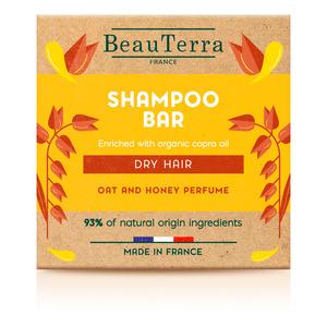 Denne sjampobaren fra BeauTerra er spesielt utviklet for tørt og skadet hår. Sjampobaren er produsert hos en såpeprodusent i hjertet av det franske området Haute Provence. Baren er utstyrt med plastemballasje og er et praktisk og organisk alternativ til din vanlige flytende sjampo. Denne sjampovarianten for tørt hår inneholder organisk mandelolje og har en nydelig duft av havre og honning.