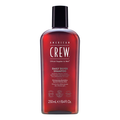 American Crew Hair & Body Daily Silver Shampoo er en glansgivende sjampo som inneholder fiolette pigmenter for å nøytralisere uønskede gule toner i håret. Sjampoen etterlater håret med en kjøligere nyanse og beskytter mot solens blekende effekt takket være UV-filtre. Med 95 % naturlige ingredienser og en frisk duft av sitrus og mynte kan den brukes daglig uten å tynge eller farge håret. Den etterlater både hår og hodebunn friske og fuktige.