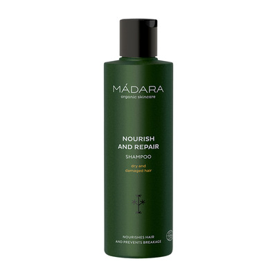 Madara shampoo som er egnet til skadet og tørt hår. Shampooen gir dyptvirkende pleie og reparerer skadet hår. Shampooen bidrar til å hindre og redusere andelen av ødelagte hår og flisete tupper. Shampooen er organisk og parabene fri.