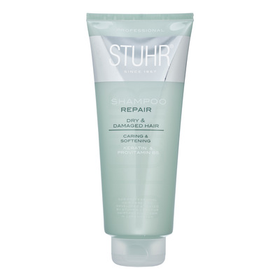 STUHR Repair Shampoo er for tørt og skadet hår. Et spesielt keratinmikroprotein trenger dypt inn i hårfibrene og bidrar effektivt til å reparere og gi næring til håret. Formelen er beriket med Provitamin B5 og en aminosyreblanding som gir næring til håret og etterlater det reparert, styrket, mykt og glansfullt.