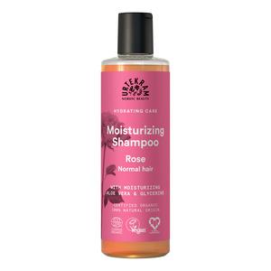 Urtekram Rose Moisturising Shampoo er laget med ingredienser av 100 % naturlig opprinnelse og er fri for syntetiske mykgjørere og fettstoffer. Den etterlater håret rent og pleiet uten å tynge det ned. For optimal fuktighet anbefales det å bruke en balsam etter sjamponering. Sjampoen er sertifisert økologisk og vegansk.
