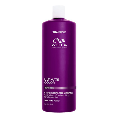 Wella Professionals Ultimate Color Shampoo 1000 ml er en effektiv og skånsom sjampo som bidrar til å beskytte farget hår. Formelen er sulfatfri og fjerner skånsomt metaller som kan påvirke hårfargens glans. Ingredienser som Glycine og Metal Purifier motvirker frie radikaler, mens Pro-Vitamin B5 gir fuktighet fra rot til spiss.