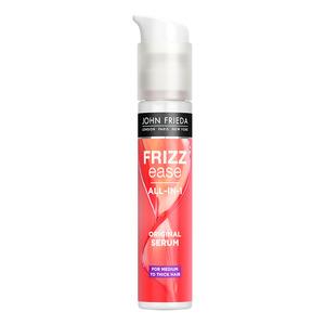 John Frieda Frizz Ease Original Hair Serum forvandler krusete hår til glatt og silkemykt hår. Dette prisbelønte serumet glatter håret øyeblikkelig, gir intens fuktighet og varmebeskyttelse, reduserer krus og gjør håret lettere å gre. Den avanserte formelen passer til alle typer krusete hår, inkludert fargebehandlet hår. Serumet beskytter håret mot fuktighet og bidrar til å holde håret glatt og håndterbart hele dagen.
