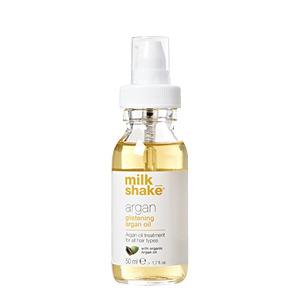 Milk_Shake Argan Oil er laget av organisk arganolje som pleier og nærer håret i dybden. Oljen passer for alle hårtyper og etterlater håret mettet og silkemykt. Oljen etterlater også håret skinnende og voluminøst og bekjemper samtidig frizz. Arganolje forkorter tørketiden under føning slik at du raskt kan komme i gang med dagen. Oljen tilfører også en fin, mild og luksuriøs duft til håret.