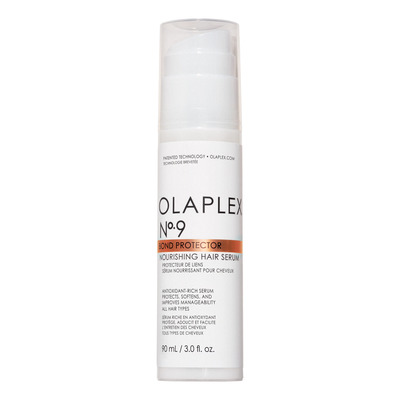 Olaplex No.9 Bond Protector Nourishing Hair Serum er et multifunksjonelt og silikonfritt serum for alle hårtyper. Det er rikt på antioksidanter som beskytter håret mot frie radikaler, forurensning og UV-stråling i opptil 48 timer. Serumet reduserer krus, har en antistatisk effekt og etterlater håret silkemykt uten å tynge det ned. Det inneholder varmebeskyttelse opp til 230 grader og har en memory-effekt som fremhever hårets form når du styler det.
