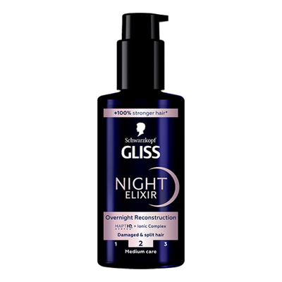 Schwarzkopf Gliss Night Elixir Split Hair er utviklet for å pleie skadet og spaltet hår mens du sover. Eliksiren inneholder det avanserte HaptiQ-systemet, som gjenoppbygger håret og gir langvarig reparasjon. I løpet av natten trenger eliksiren dypt inn i hårfibrene og skaper nye mikrobindinger som styrker håret innenfra.
