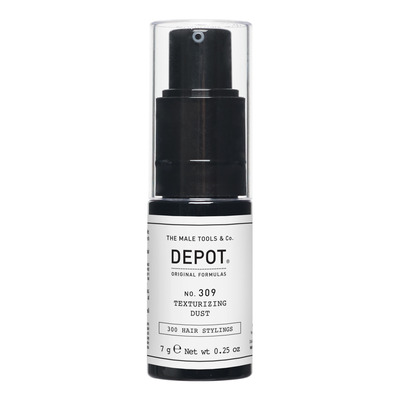 Depot 309 Texturising Dust er et hårpudder for menn. Hårpudderet gir maksimal fylde til håret og er spesielt godt egnet til fint og tynt hår. Det inneholder kiselpulver som bidrar til å gi håret tekstur og volum. Hårpudderet leveres med en pumpe som gjør det enkelt å dosere riktig mengde.