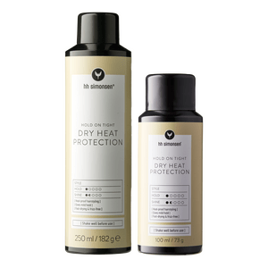 HH Simonsen Dry Heat Protection Gift Box er perfekt til deg selv eller som en gaveidé. Settet inneholder to varmebeskyttende sprayer i forskjellige størrelser. Dry Heat Protection beskytter håret mot varme opp til 210 °C og gir et lett hold med en hurtigtørkende formel. Den forebygger frizz og passer til alle hårtyper. For best resultat, rist før bruk og spray direkte på tørt eller håndkletørt hår fra ca. 20 cm avstand, og kam håret før styling.