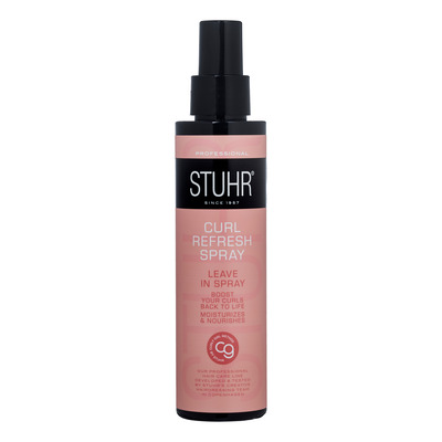 STUHR Styling Curl Refresh Spray gir krøllene nytt liv på dager uten hårvask, og tilfører fuktighet og næring. Den lette leave-in-formelen med 100 % naturlig polymer, baobab-ekstrakt og panthenol reduserer krus og gir krøllene sprett og glans. Håret etterlates mykt, pleiet og lett å style.