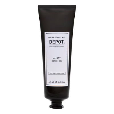 Depot 307 Black Gel er for menn som ønsker å dekke grått hår. Gelen er svart og spesielt utviklet for mørkhårede menn som begynner å få grå skjolder. Den bidrar til å redusere synligheten av lyse hårstrå samtidig som den tilfører håret volum og medium hold.