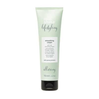 Lifestyling Smoothing Cream fra Milk_Shake er en stylingkrem som jevner ut skjellaget og beskytter håret ved å føne. Stylingkremen gir håret et lett og naturlig hold. Kremen bekjemper krusete hår, og er derfor også spesielt god til krøllete og krusete hår. Den glattende kremen etterlater håret fint, mykt og skinnende. Stylingkremen inneholder quinoaproteiner som beskytter hårfargen slik at den ikke falmer over tid. Kremen har også en varmebeskyttende effekt og beskytter mot varme fra alle typer stylingjern.