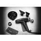 GAMA IQ Lite Black leveres med to munnstykker, diffuser, rengjøringssett og tre ekstra filtre. En varmebestandig matte og en tre meter lang ledning for maksimal bevegelsesfrihet er også inkludert. En ideell løsning for både hjemme- og salongbruk der letthet og presisjon er avgjørende.