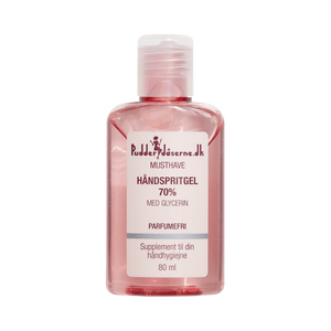 Parfymefri håndsprit fra Pudderdåserne, som både er feminin og lett å ha med i vesken. Inneholder glyserin for å unngå at den tørker ut hendene.
